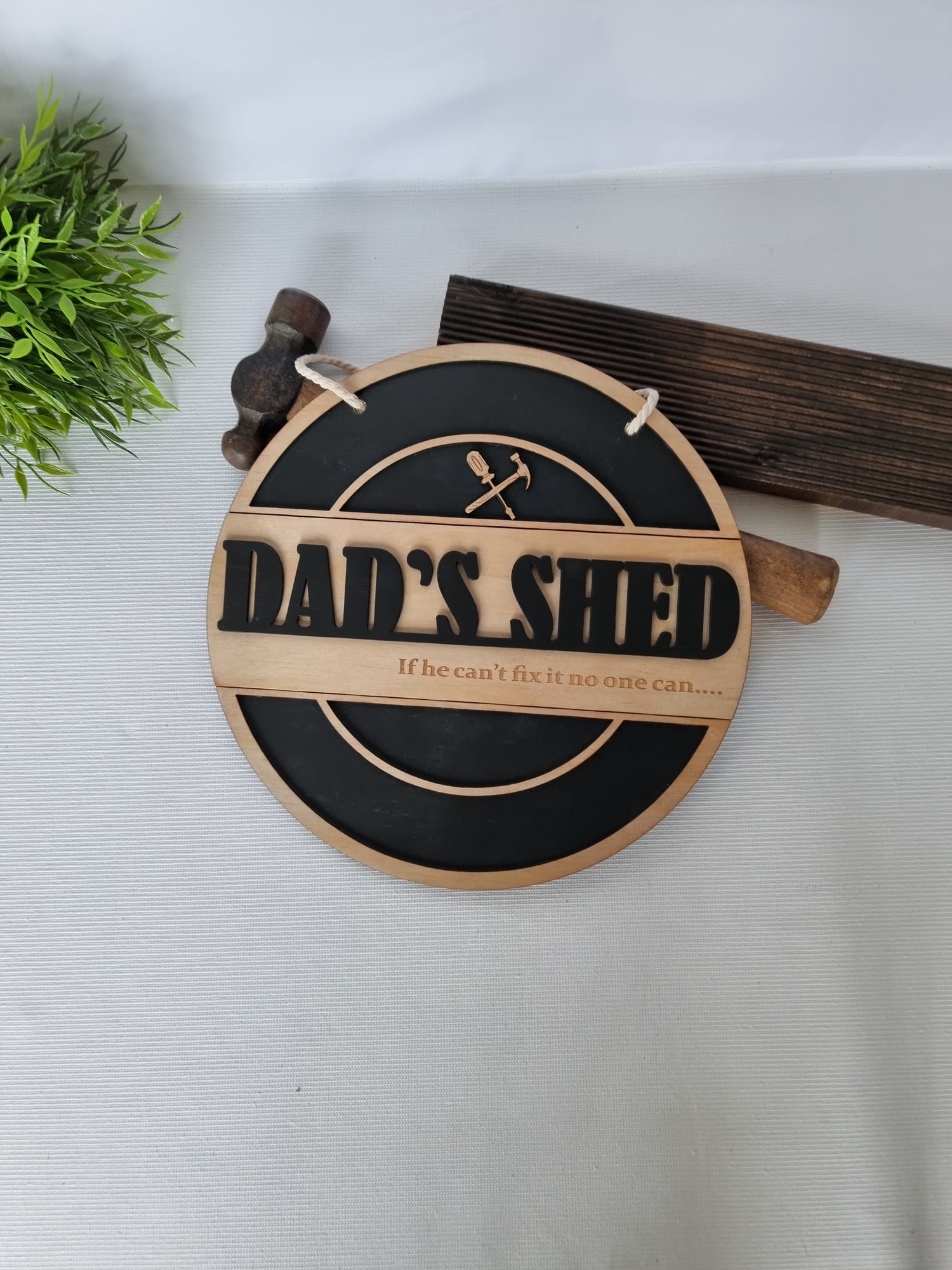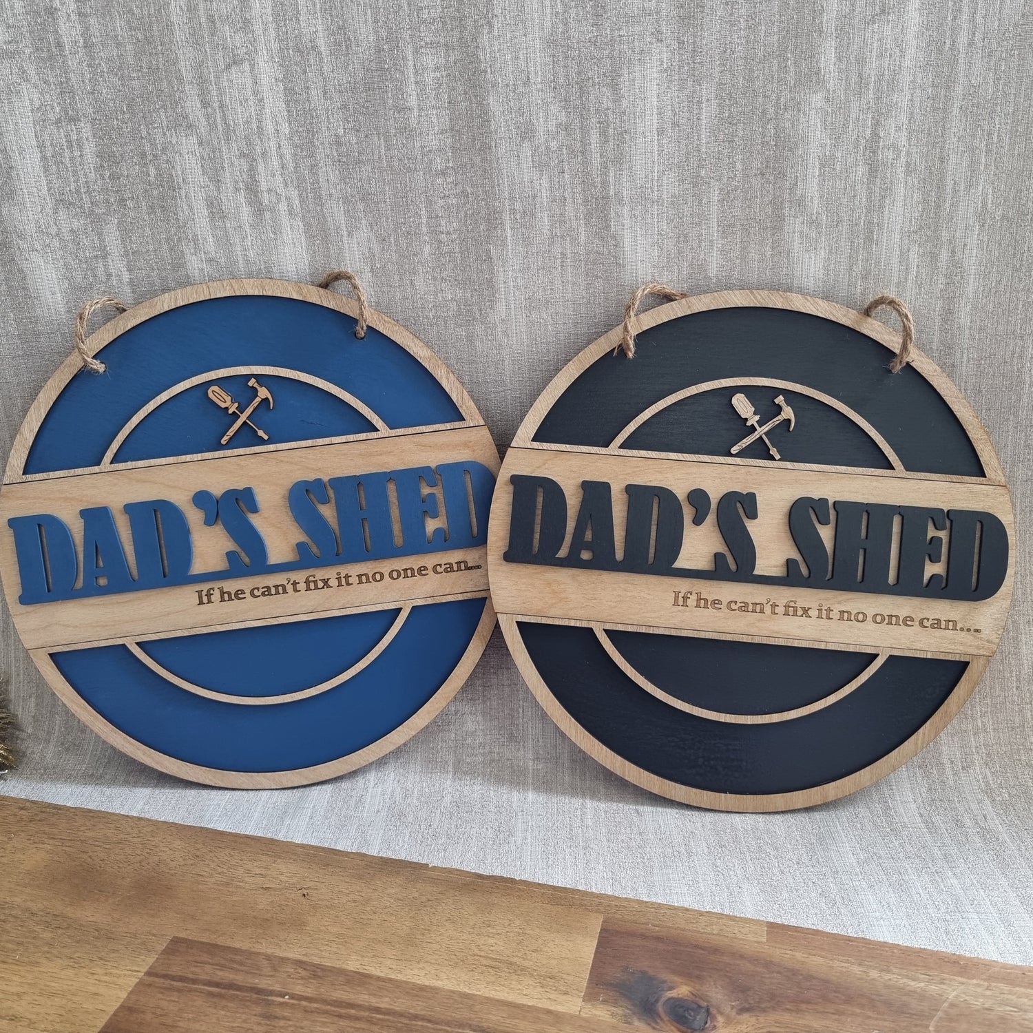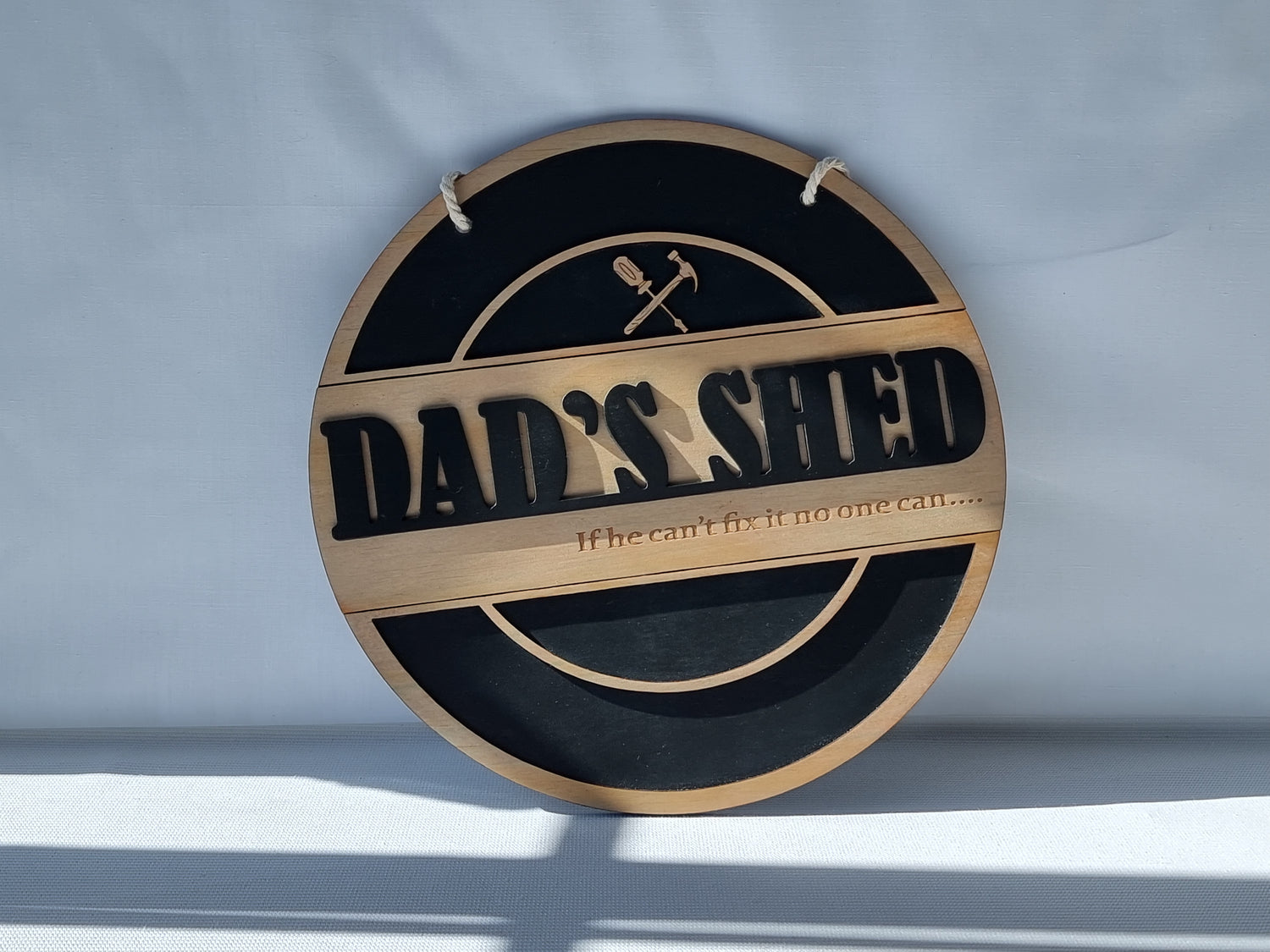 Our Dad's shed wooden sign is layered with plywood. Each piece laser cut and coated.