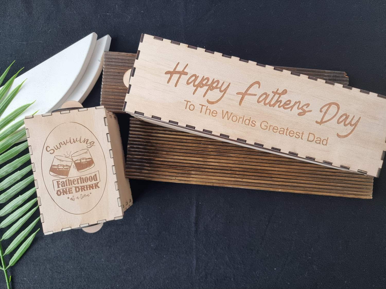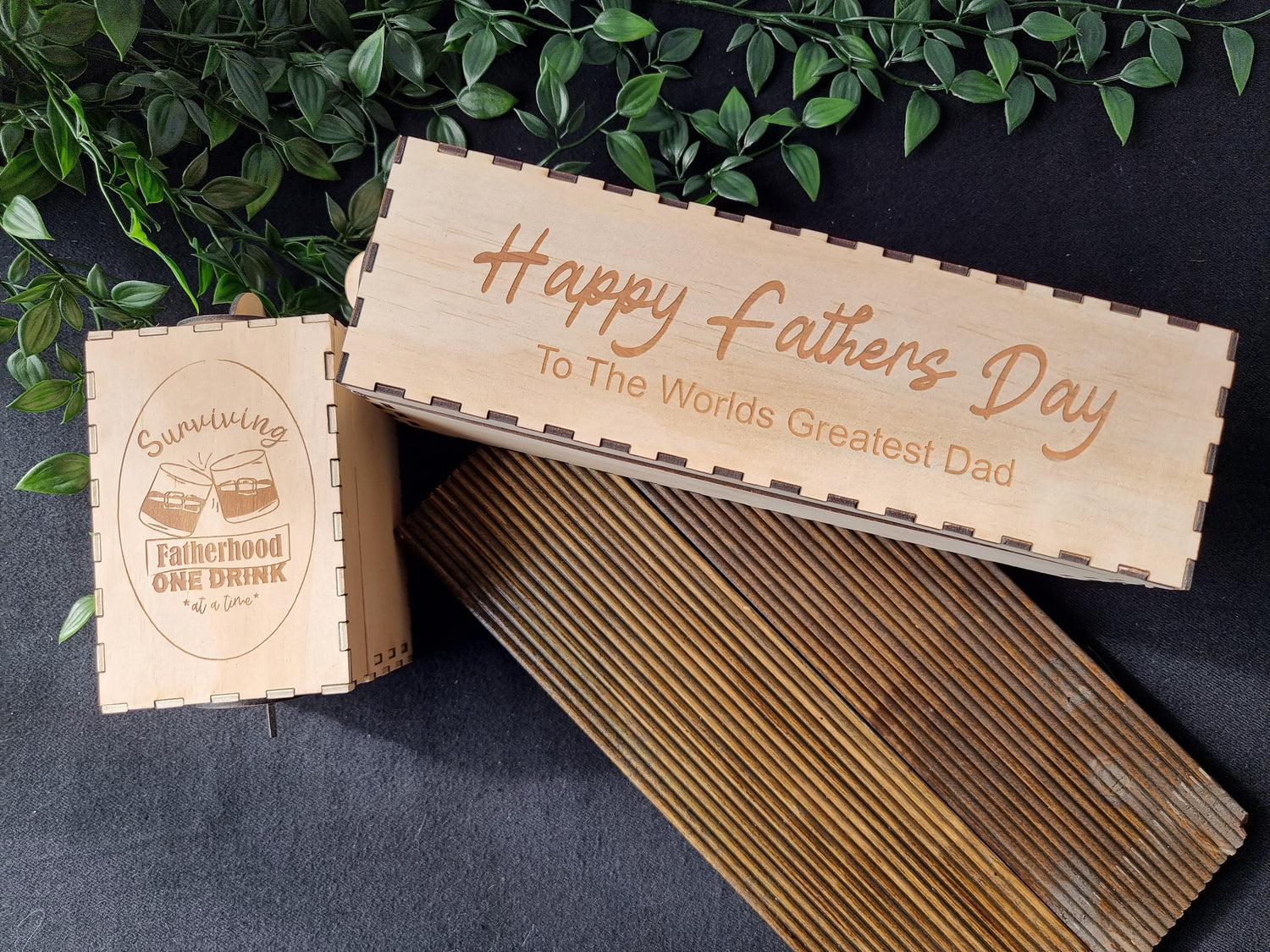 This Personalised Engraved wooden bourbon box holder is the perfect way to give a bourbon bottle as a gift! The wood laser on the lid opens up to reveal the bottle, making it an elegant and unique gift.