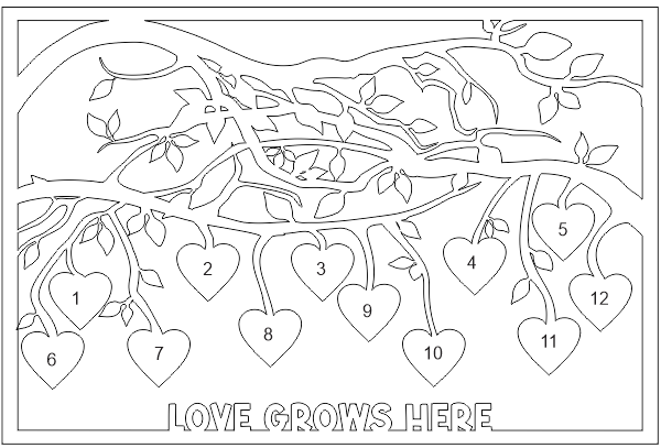 Number your names according to the hearts in the picture otherwise they will be placed randomly. If you only have 4 names, the four names will be placed where the numbers are already placed and all other hearts will not be there.