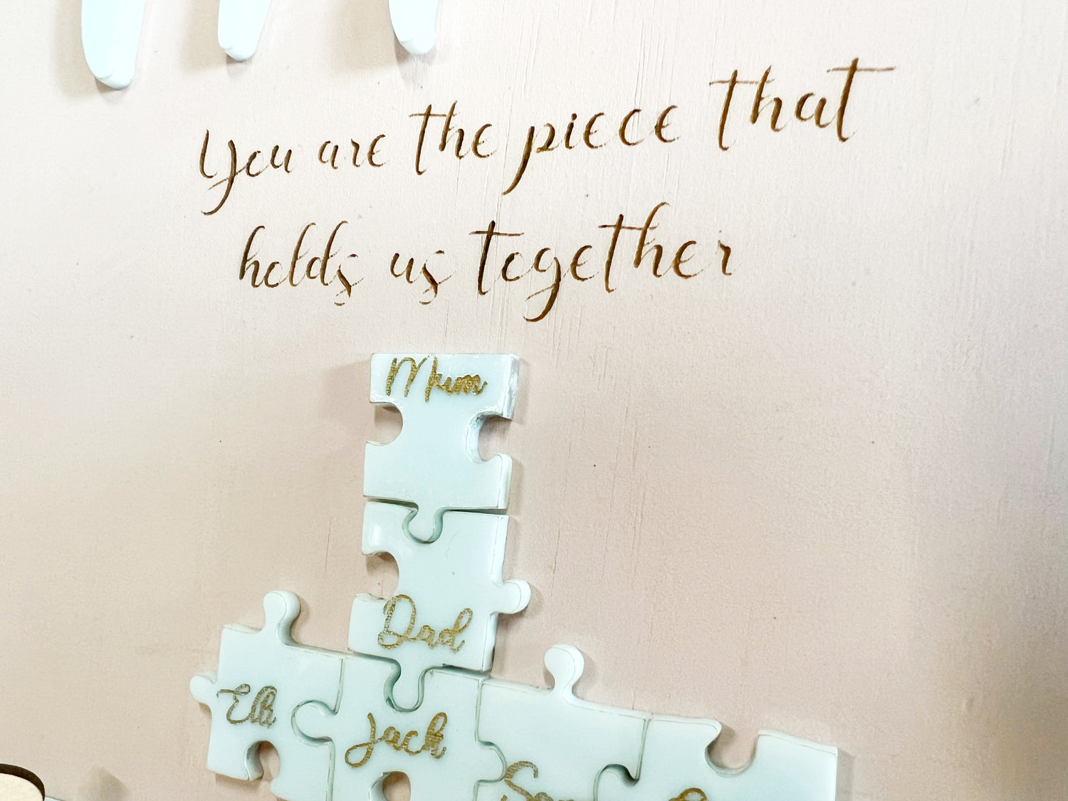 Mum's Hold The Pieces Together is the perfect personalized gift for any special mum in your life. With every piece of the puzzle carefully engraved, it guarantees a memorable and meaningful present that lets her know just how much she’s loved. A heartfelt way to show appreciation for all that she does.