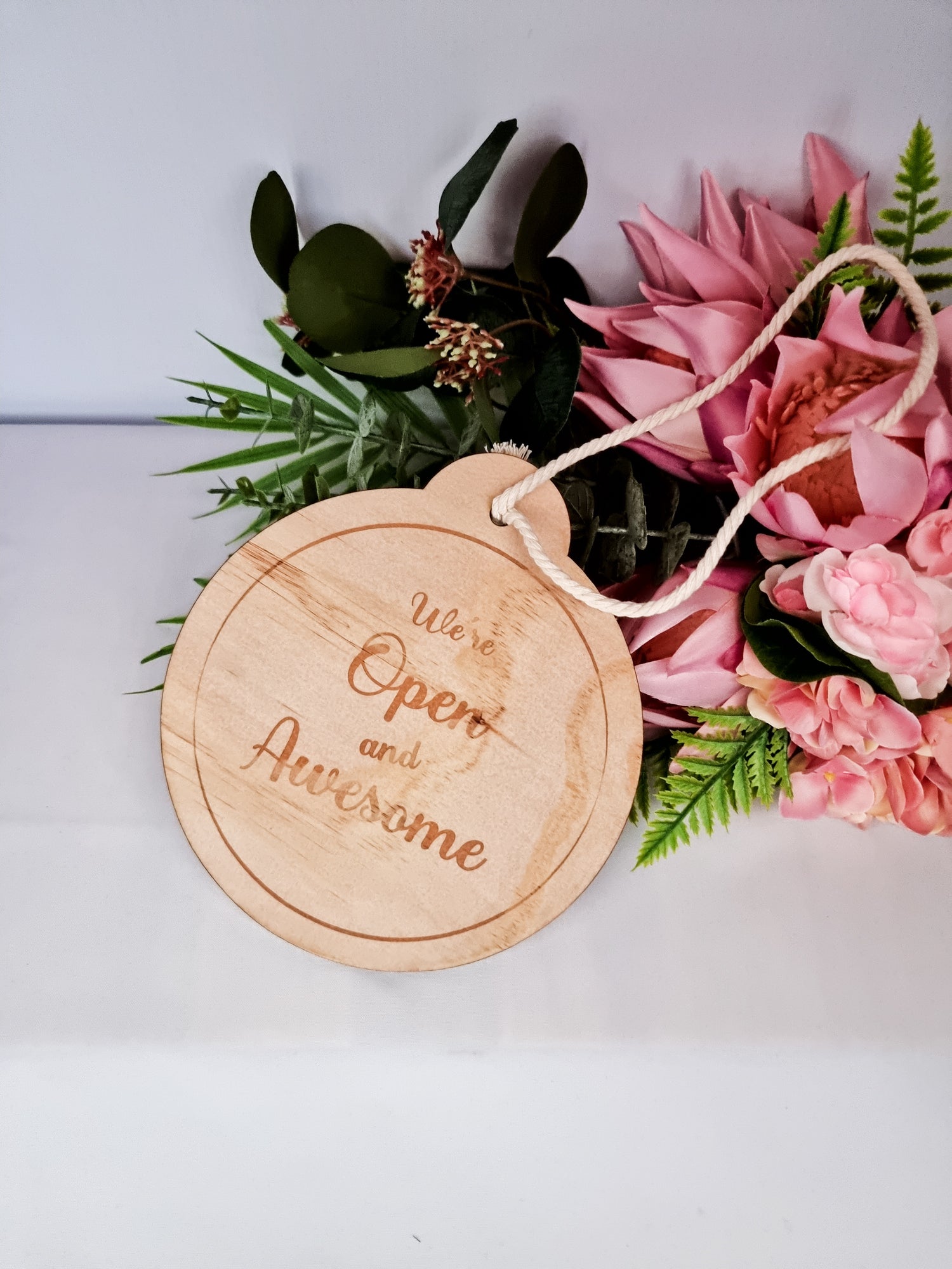 Round shaped open and close sign, mix and match how you would like. Rope sits 21cm long.