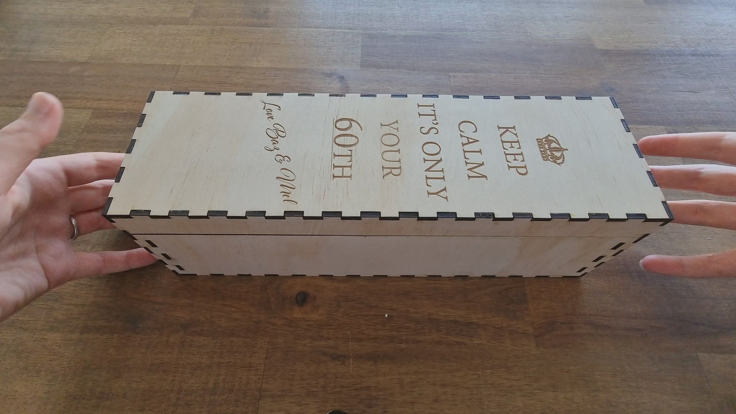 This Personalised Engraved wooden bourbon box holder is the perfect way to give a bourbon bottle as a gift! The wood laser on the lid opens up to reveal the bottle, making it an elegant and unique gift. Plus, you add a personalisation to the lid making it extra special!
