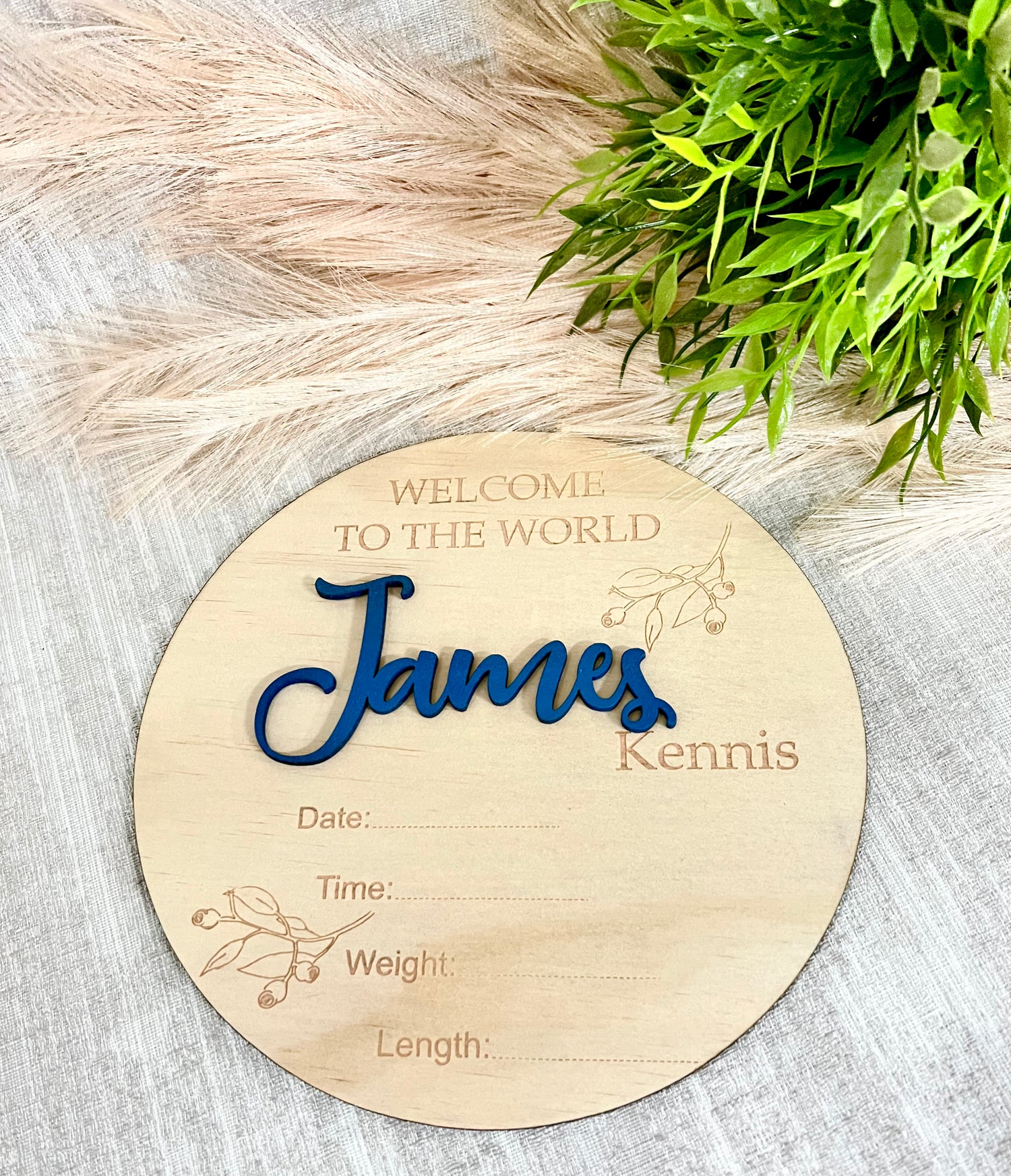 "Welcome to The World" Personalised Baby Announcement Plaque - Design Hut