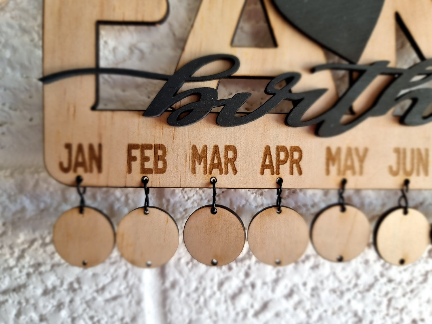 Looking for a unique and special gift? Look no further than our personalised wood birthday calendar! Our calendars are made from plywood, making each one unique. They are engraved with the names of your family members and the date, making them a special keepsake for years to come. They make a great gift for any occasion!