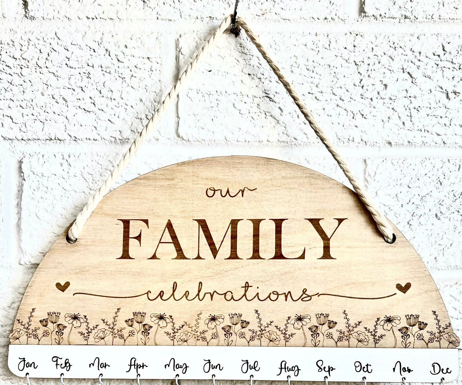 Wooden Floral "Our Family Celebrations" Calendar - Design Hut